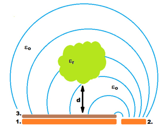 The second group of sensors are systems that change their output signal as a result of the appearance of objects with appropriate properties in their surroundings. The most popular solutions use differences of permittivity between a detected object and the environment [35,36,37,38,39].