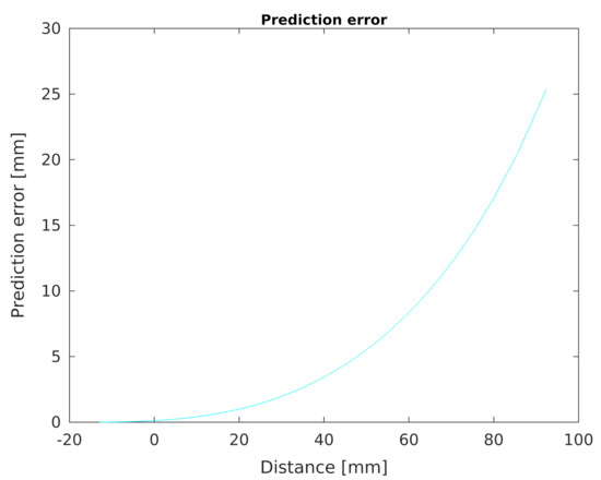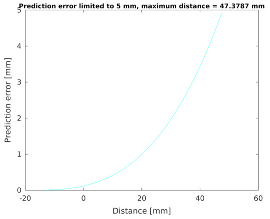 Finally, the prediction error chart determined by the Equation (4) as a function of the distance from the developed sensor is shown in the chart in Figure 13. It can be seen that the accuracy of determining the distance from an object changes non-linearly when this distance increases.