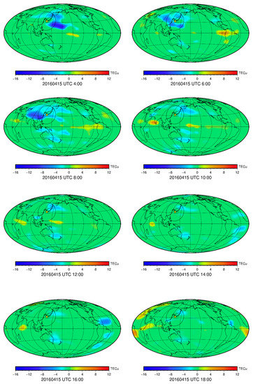 Global anomalies of TEC at 2-h intervals on 15 April 2016.