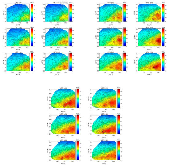 TEC variations with 10-min resolution from UTC 1:00 to UTC 3:50 on 8 September 2017.
