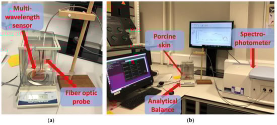 The study was approved by the Senate Research Ethics committee at City, University of London prior to experiments. Experimental setup was designed to simultaneously record the optical absorbance using the Lambda 1050 Spectrophotometer (PerkinElmer Corp, Waltham, MA, USA) and the developed hydration sensor. The reference values for water content were recorded using a TR-24 electronic precision balance (Denver Instrument GmbH, Göttingen, Germany).