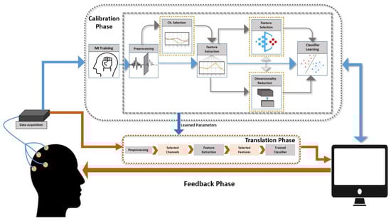 Figure 2. Block diagram showing the typical structure of MI-based brain–computer interface (BCI).