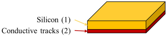 Concept mapping of different materials composing our Integrated Circuit (IC). The conductive tracks (2) are viewed through the silicon layer (1), since the remaining material is opaque to infrared light.