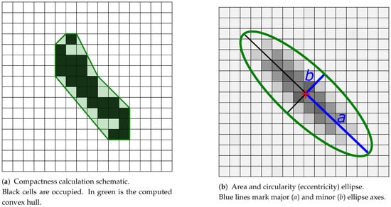 where Area is the number of occupied cells classified for the object and  is the number of cells which lie within the convex contour around the selected occupied cells.