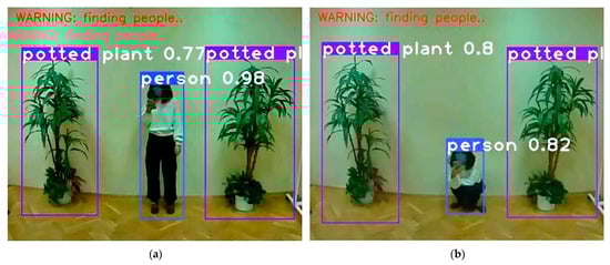 Human detection standing (a) and squatting (b) by using yolo3-tiny.