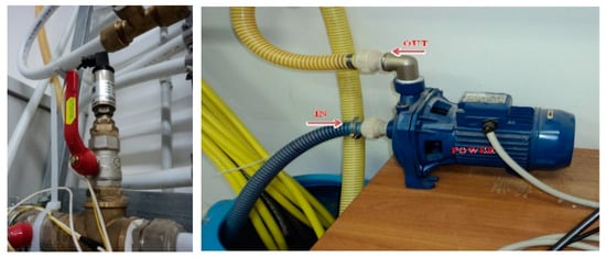 The sensors were mounted on the pipe, as shown in Figure 5, with an appropriate valve and joint to allow the exclusion for sensor maintenance and verification. The sensors [] were connected to acquisition apparatus and their electronics. The sensors capture vibrations from water flow, pushed by the pump (Figure 5, right), to be transduced into an electric signal that corresponds to the water pressure. Further explanations are described in []. Since drainers or drippers are often used in many agricultural and rural environments, the collector pipeline’s final section for dispensing was 1 inch or less. The abovementioned configuration exactly reflects the pipeline used for the above environments in buried or surface configuration [,,]. Practically speaking, to run a DLP algorithm, we should use a procedure similar to DPA [] with a substantial difference given by the computation of amplitudes because DLP employs set of {} computed to solve the system of K linear equations focused on the following equations: