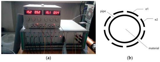 The measurement is made with an electrical capacitance tomography unit by measuring the value of the electric capacity between successive pairs of electrodes Nel. Electrodes are placed around the pipe at an equal distance, as shown in Figure 3. The measurement output has the form of the vector where its elements stand for consecutive electrode pairs: