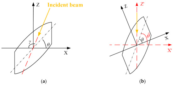 As shown in Figure 7a, when the beam is incident at any angle to the vortex model whose tilt angle is , rotate the vortex model to the tilt angle of