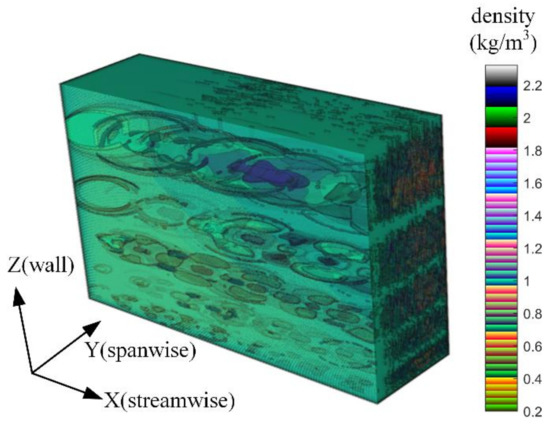 The construction method of density field described in this subsection is for the two-dimensional streamwise density field. Since designing the vortex model in the three-dimensional density field needs to deal with the coupling between streamwise and spanwise, it is an open problem in the current aero-optical research. Therefore, the method to construct the three-dimensional density fields in TSAO involves arranging multiple streamwise two-dimensional density fields along spanwise, as shown in Section 4.1.