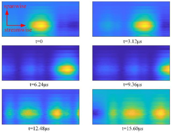 In streamwise, since has spatio-temporal equivalence, the component of at a certain frequency can be described by the one-dimensional traveling harmonic model [21] as