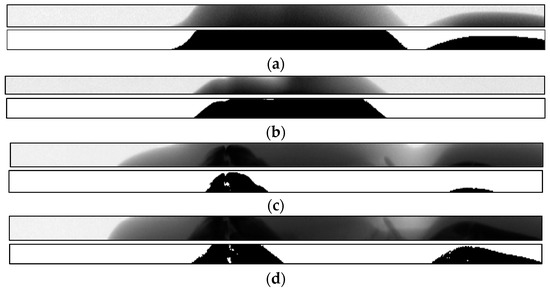 Segmentation results of four selected images in the sequence. (a) Sequence image 1; (b) sequence image 2; (c) sequence image 3; (d) sequence image 4.