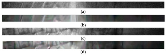 A partial image sequence obtained by linear scanning is shown in Figure 1c, and each image is 2232(height) × 60(width) pixels in size, and all images are partially overlapped with adjacent ones. The data in this paper came from the human head model, and a total of 480 small-size images were obtained by linear scanning. Sequential images need to be processed by a stitching algorithm to obtain panoramic images before they can be used for clinical diagnosis.