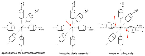 - We optimized the triaxial magnetic antenna (coils) regarding our previous work [23,24], significantly decreased the crosstalk of the magnetic field generated in each axis. We also redesigned the signal processing unit at the magnetic field strength sensing side and decreased the noise, thus improved the positioning accuracy.
