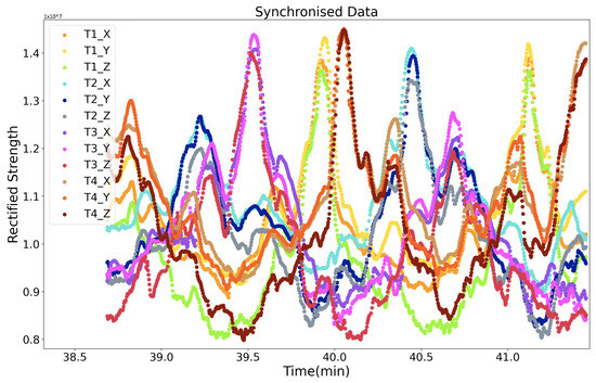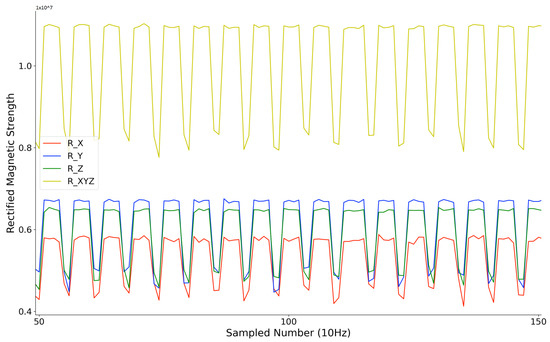 Rectified strength with only magnetic-related data (four transmitters with RS485 module).