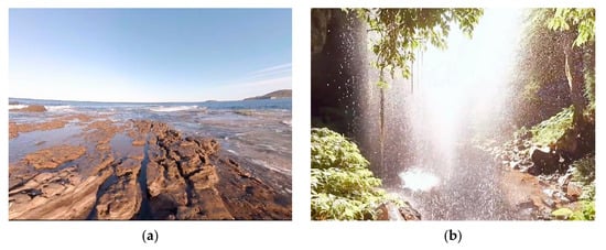 In this work, our aim was to examine the feasibility of VR-based customized 360-degree experiences for stress relief as an alternative to chromotherapy. Participants were stressed and then conducted through a relaxation phase where they selected one of the four 360-degree experiences available. We recorded the electroencephalography (EEG) activity of the participants throughout the experiment, and asked them about their self-perceived stress level (SPSL) via surveys. We used a commercial VR device, the Oculus Quest head-mounted display (HMD), to implement four different 360-degree virtual experiences: a lone beach, a cave with a water cascade, a space trip, and an aurora borealis sight. In each scenario, we included relevant background sounds, either to emulate a characteristic environmental sound (like in the beach and cascade experiences) or to render a relaxing ambient (like in the space and aurora experiences). Since we aimed to evaluate the effectiveness of the experiences preferred by the participants, they were asked to select one of the four VR scenarios during the relaxation stage of the study. Previous studies have assessed the potential of VR to help deal with stress [18,19,20]. For instance, in [18], we demonstrated that a VR application that emulates color-light therapy can achieve the same performance in terms of stress relief as chromotherapy. In [21], the authors used a cave automatic virtual environment (CAVE) system to create a virtual natural environment, including a water stream and nature sounds to enhance relaxation.