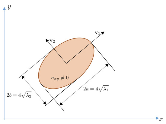 Relation between the variances and principal axes in the case of a rotated ellipse. and are the eigenvalues of the covariance matrix.