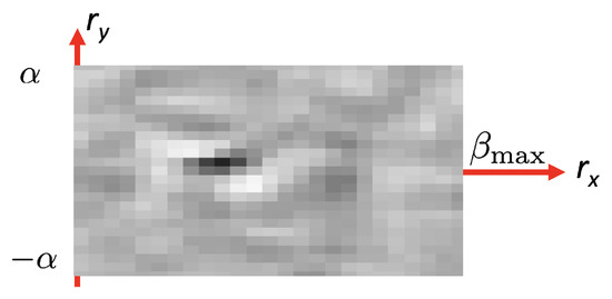 Then, the elevation angle is defined as the angle between the axis and the camera plane, as illustrated in the same figure. Notice from Figure 11 that the length of the observed minor axis on the image, , depends on the spheroid dimensions (A and B), and the elevation angle .