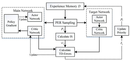 Figure 4 shows the block diagram of the PER-DDPG’s structure. At each decision-making step, the actor network outputs action with noise for exploring according to state, and the current state, action, reward, and next state are packaged and stored in experience memory