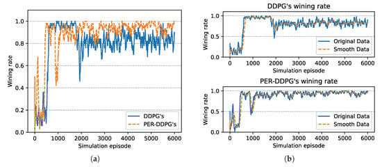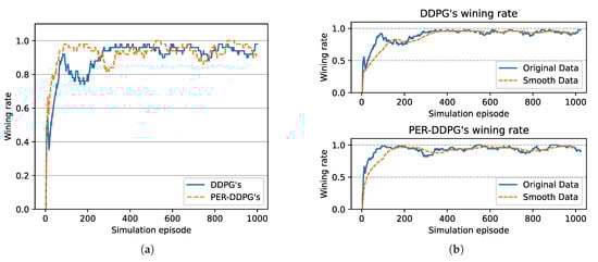 Although DDPG can avoid the dimensional explosion problem brought by continuous state space and action space, it does not consider the diversity of data and does not utilize historical experience fully. This results in the low convergence speed of DDPG’s policy and poor stability of the convergence result. Meanwhile, because the episode of UAV maneuver decision-making is short, while the task process lasts a long time, the changing of reward is not obvious. Thus, the value density of historical experience is low. That is the reason why we use PER to generate training data [