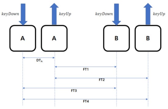 Figure 1. Based on the collected keyDown and keyUp data, the DT can be calculated using Equation (