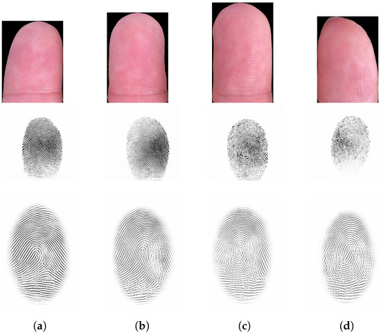 Figure A1 shows some examples (one row per subject) of the acquired images to highlight the intra-class variations in the selected subjects. The corresponding segmented fingertips are illustrated in
