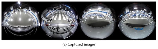 Ko et al. [18] and Li [19] used a hyperbolic reflector and a spherical image sensor instead of a fisheye lens, respectively. The hyperbolic reflector is a mirror that increases the field of view of a camera by more than 180 degrees. The spherical image sensor can see all 360-degree surroundings by combining two cameras having a field of view of 180 degrees or more.