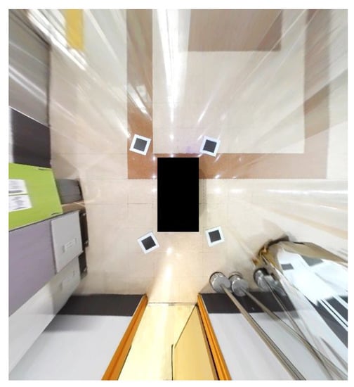 The proposed method can generate an AVM image using only four randomly placed calibration boards. In contrast, the conventional methods require calibration boards with known locations. Therefore, to compare the proposed method with the conventional method, we aligned and measured the calibration board locations, as shown in Figure 16, and provided the measured data as input to the conventional method.