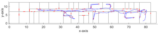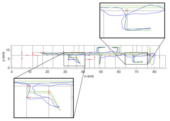 With a further analysis of the achieved results, we have found out that in some cases, the track estimated by the implemented dead reckoning algorithm, although with reasonably small error, still crosses between the rooms through walls, as can be seen in Figure 5.