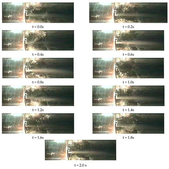 The accumulation of condensed liquid upstream of orifice additionally leads to pulsations of the pressure. Figure 6 contains images with the sequence of photos taken at 0.2 s time intervals. Consecutive images demonstrate fluid accumulation in front of the standard orifice. The volume of accumulated liquid increases until a critical value is exceeded. Then the liquid is suddenly lifted by the flowing gas, which forcefully moves to the other side of the orifice (t = 0.8). This type of liquid movement is accompanied by a significant increase in the measured pressure. Such pulsations have a frequency of several hertz. After such an increase in pressure, high turbulence is observed for some time, which also makes it difficult to read the measured pressure correctly. For this reason, it is recommended to use orifices for which the pulsation and stream instability will be as low as possible. Slotted orifices form a suitable solution in this respect. Therefore, they formed the subject of research in this paper. A certain difficulty is that for slotted flanges there are no standards or other documents allowing for their correct selection depending on the flow system. There is no such idea as a normalized slotted orifice for which standards would be available that would offer the basis for the calculation of parameters such as the flow coefficient, etc. Each solution requires experimental tests on the basis of which the values for the appropriate flow system are selected.