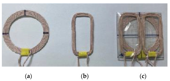 Photograph of the fabricated coils: (a) primary coil; (b) assistant coil; (c) multilayer coil.