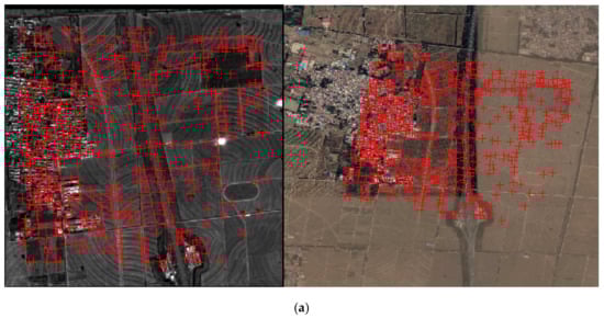 Commonly used remote sensing image matching methods can be divided into two categories: one is feature-based, and the other is region-based [10]. In the field of computer vision, classic feature matching algorithms such as SIFT (Scale-Invariant Feature Transform) [11], SURF (Speeded Up Robust Features) [12], FAST (Features from Accelerated Segment Test), and ORB (Oriented fast and Rotated BRIEF) [13,14] are widely used in the field of remote sensing image registration, while these descriptors are very sensitive to the radiation difference between images. In order to overcome the influence of radiation differences between multimodal images, many scholars have made improvements on the SIFT algorithm [15,16,17]. The researchers in references [18,19] replaced the gray difference gradient of the original descriptor with the ratio gradient to match the optical and synthetic aperture radar remote sensing images, which has reduced the effect of speckle noise to a certain extent.
