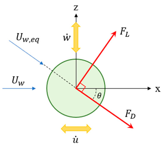 where ρa is the density of air. Because the velocity of the cylinder is much smaller than the wind speed, Equation (41) is rewritten as: