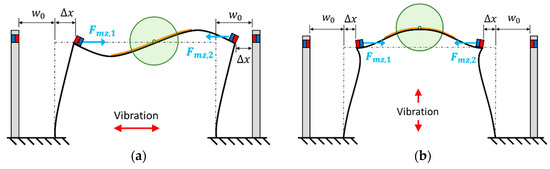 The magnetic force is then integrated in the model. The schematics of the proposed PEH with magnets are shown in Figure 8. Two pairs of magnets are installed symmetrically on the PEH to generate repulsive force. The magnetic force can be represented as: