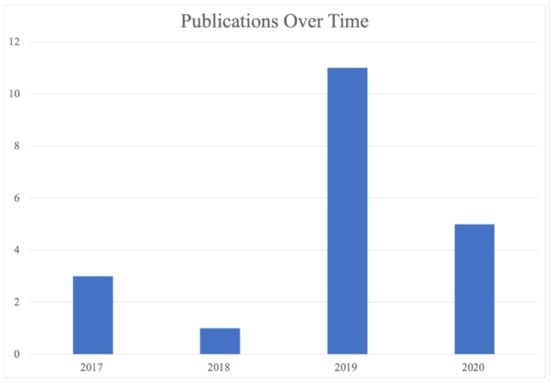 If we consider the first popular VA to be Apple’s Siri []—first made available with the release of the company’s iPhone model 4S in 2011—it is interesting to see that the remaining primary studies which reported concrete data only dated back to 2017, four years before this review. The potential reasons for this will be discussed in Section 4. Figure 3 shows the number of publications by year.