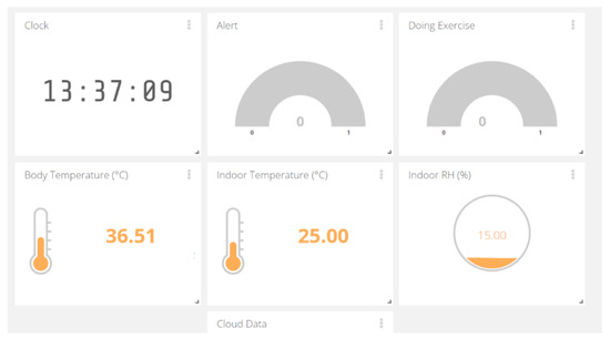 The alert message is transferred to the user via the liquid-crystal display (LCD), Cloud via MQQT broker, or Bluetooth via Serial Bluetooth terminal. The user can know their body temperature every time and appropriately adjust their exercise activity to avoid high temperature.