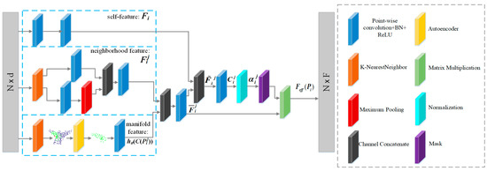 where represents channel concatenate, C(Pij) is the coding feature of Pij, and hθ(C(Pij)) is the manifold features of Pij. hθ(C(Pij)) is extracted from FELayer, which contains an autoencoding and point-wise convolution.