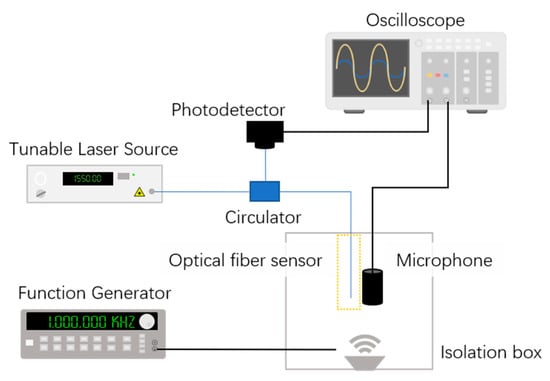 Fiber optic acoustic sensors have been extensively investigated for different applications due to the small size, immunity to electromagnetic interference, and resistance to harsh environments provided by optical fiber. Acoustic sensors are an essential element with a wide range of applications in geophysics for seismic event detection [1,2], or for petroleum exploration [3] and in pipeline leakage [4]. This sensors also play an important role in underwater acoustic sensing [5], with applications in the military field [6], for example, in biomedical applications [7,8,9], and in structural health monitoring [10,11,12].