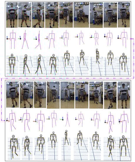 Finally, to demonstrate the reconstruction accuracy of human motion tracking on a virtual 3D avatar. The results from closed-loop walking single trail (as shown in Figure 10) data are reconstructed in real-time on the virtual 3D avatar. As mentioned earlier, the avatar model built using a combination of multiple parametric ellipsoids using VTK. The sequence of walking steps reconstructed on the 3D avatar demonstrated in Figure 11. The results show that the reconstruction is realistic and reasonably accurate.