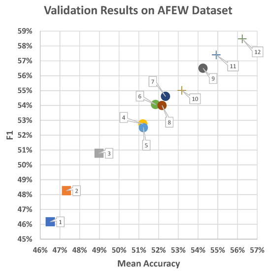 - Bargal, S.A.; Barsoum, E.; Ferrer, C.C.; Zhang, C. Emotion recognition in the wild from videos using images. In Proceedings of the 18th ACM International Conference on Multimodal Interaction—ICMI 2016, Tokyo Japan, 12–16 November 2016; ACM Press: New York, NY, USA, 2016; pp. 433–436. [Google Scholar] [CrossRef]