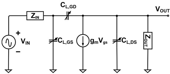 Figure 6 shows the equivalent circuit model of the amplifier [17]. Assuming that the bias voltage VB of the amplifier only, and the amplifier with BWE are assumed to be the same, the internal capacitances CL,GD, CL,GS, CL,DS, and gmVgs are the same.