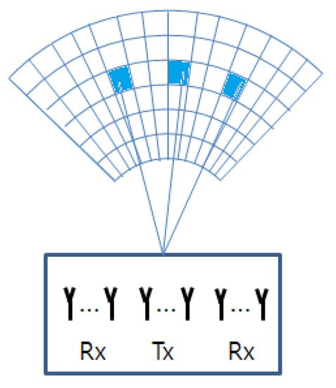 15]) and then reformulated in terms of the (azimuth angle, range) patches in the image region of interest. We can then formulate the radar image estimation problem, where the maximum a posterior (MAP) estimate is obtained. In addition, we consider that the RadCom platform transmits information data through OFDM waveforms to the information receiver with multiple antennas, where MIMO channel is established from RadCom platform to the information receiver. Therefore, the achievable rate at the information receiver can be regarded as the communication performance for the RadCom platform. To understand the impact of the subcarrier allocation on the MSE, we analyze the lower bound of Cramer–Rao lower bound (CRLB) in our radar image estimation with three different subcarrier allocation methods—equi-space subcarrier allocation, block-wise subcarrier allocation, and pseudorandom subcarrier allocation. Based on the analysis, we propose a new subcarrier allocation strategy that efficiently maximizes the achievable rate and simultaneously reduces the MSE of the radar images. We also discuss how the Doppler frequency of the targets in 2D radar image can be estimated by exploiting the output of our radar image estimation problem. Through computer simulations, our BMP-based method exhibits radar images with higher resolution, compared to the conventional back-projection-based imaging method [
