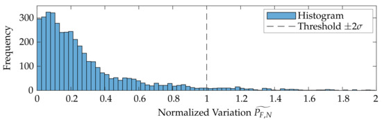 to trim possible outliers is given by the difference of the probing error with respect to sample point and the median of the probing errors of the respective neighborhood subset as shown in Figure 11b. is the variation metric normalized to the confidence interval of . This interval was found experimentally for all datasets. Possible outlier values are recognizable and rejected according to the histogram in Figure 12.