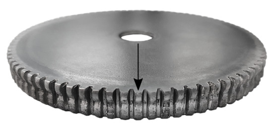 Next to the optimization of the forming process, a further objective is the characterization of the in-service properties of the components based on precise knowledge of the geometry especially of the functional elements. Since the application of SBMF-processes aims at a near-net-shape production without further post-processing, the remaining mold filling errors, eccentricities or surface defects, such as notches, represent a relevant influence on the component properties. While mold filling defects reduce the effective component cross section, notches represent locations of a potential stress concentration during operation of the components and, thus, affect their fatigue life [11,12]. In addition, eccentricities of the components can lead to high-frequency fluctuations in torque during operation of the gears [13]. In order to estimate the stresses during service correctly and calculate them based on common Finite element method (FEM) simulations, the precise geometries of the components are required [14].