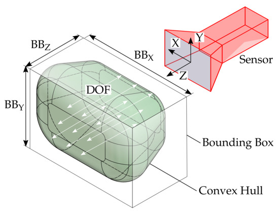 The actual shape and size of the respective measuring volume may also deviate significantly from the general specifications, as provided by some manufacturers. Under certain circumstances, the shape of the measured volume may not be represented by a cuboid or frustum. This is particularly the case when the influence of the field of curvature increases. Further differentiation with respect to the maximum reconstructable surface area has revealed a pronounced dependence in the direction of the optical axis for some sensors.