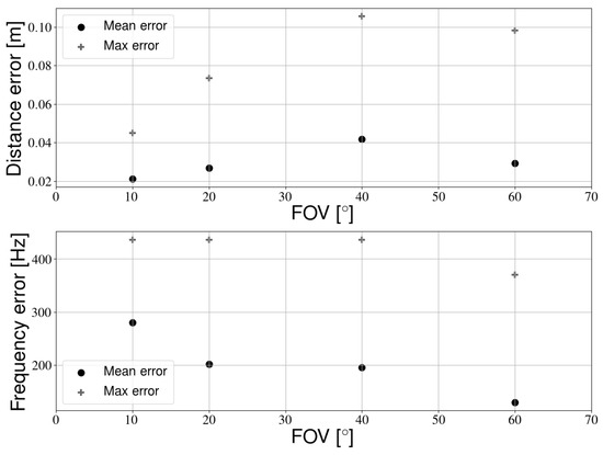 Top: positioning accuracy as a function of the camera FOV. Bottom: frequency accuracy as a function of the camera FOV.