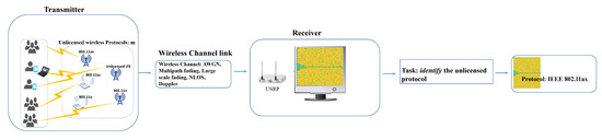 Proposed system for unlicensed protocol identification under noise and different channel propagation models.