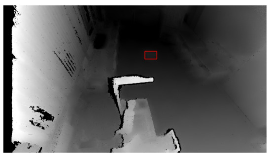 Marked and identified object on the depth image. The red rectangle represents an identified object based on depth change.