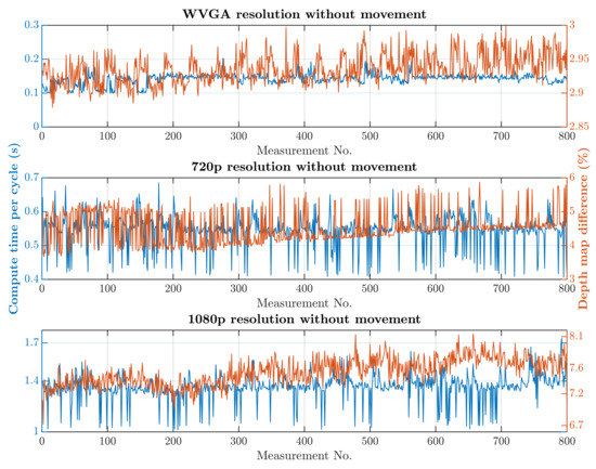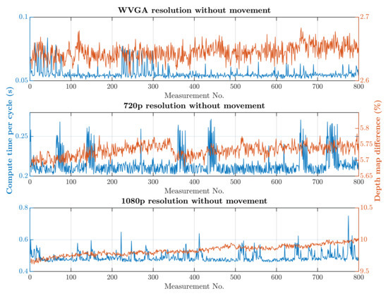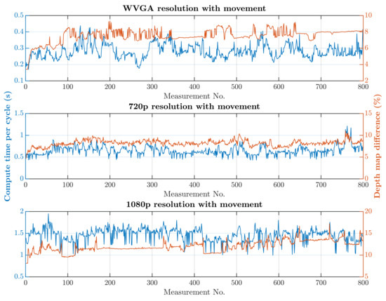 Future work could focus on transferring the demanding image processing from a Central Processing Unit (CPU) to a Graphics Processing Unit (GPU), which could significantly reduce the computation time and provide an opportunity to increase the resolution of the processed image. One interesting alternative would be to use a CPU and GPU for simultaneous computation. The depth camera API offers the option to save a captured point cloud in the GPU memory. This would enable us to utilize the GPU’s computational power for some of the computational work, and the result would be sent to the CPU for further evaluation. It would be worth considering using the NVIDIA Jetson platform for image processing and evaluation or using cloud-based computing options for decentralized computations.
