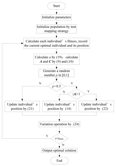 Therefore, the flow diagram of MWOA is presented in Figure 4.