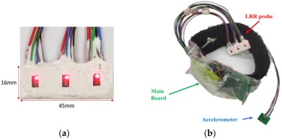 (a) Real photo of the array-type probe, (b) the real photo of the LRR wearable device.